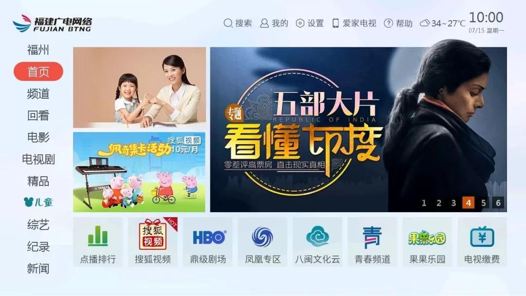 自2014年5月福建高清互動電視云平臺上線以來,歷經多次升級優(yōu)化,四次迭代界面UI,每一次升級都給用戶帶來新層次的體驗,互動平臺活躍度居全國同行前列。平臺節(jié)目和應用日趨豐富,高、標清直播頻道多達200套,獨家傳輸央視4K超高清節(jié)目,提供92個頻道節(jié)目10天內回看,電影院線、熱播劇、精品少兒、戲劇方言、黃岡名師課,以及卡拉OK、QQ音樂、電競游戲等內容,讓用戶不僅可以看電視、用電視,還可以“玩”電視。平臺還聚合了優(yōu)酷、愛奇藝、騰訊三大視頻網站資源,讓喜歡追網劇的用戶擺脫手機、pad的小屏限制,享受大屏帶來的優(yōu)質視聽感受。